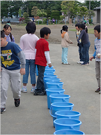 ![]() 休み時間、好奇心いっぱいの子どもたちは 早くも自分のバケツ探し |