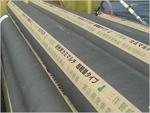 | 登米ライスサービスさんの田んぼでは、除草剤を使用せず、「紙マルチ」というシートを田んぼに敷きます。 シートの下には日光が届かなくなるので雑草が生えにくくなるそうです。 シートは紙なので、自然に土に還ります。 | |