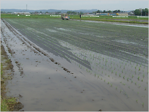 ![]() 登米ライスサービスさん田んぼ ゆったり株間で苗ものびのび |